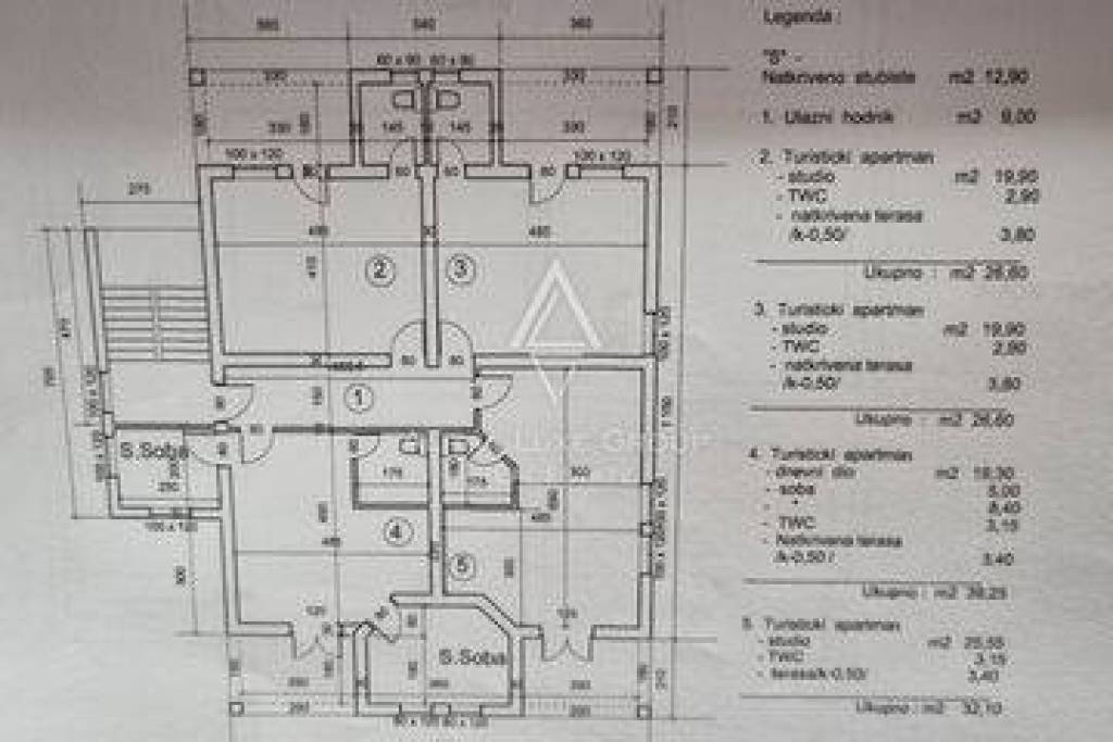 A total of 11 apartments have been legally divided and are sold separately. One apartment has already been purchased, with the owner residing on the ground floor. Seven apartments remain available. The property has recently been upgraded with a solar system and a canopy. Each apartment measures approximately 30 m², with an estimated price of €140,000.