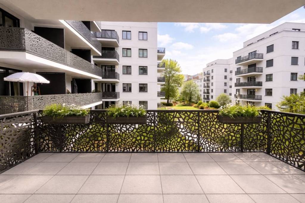 Premium fixtures such as high-quality oak parquet flooring, large doors, floor to ceiling windows and underfloor heating offer a feeling of both relaxing and prestige living. Bathrooms are equipped with both showers and bathtubs and are made of premium materials. The landscaped garden combined with spacious loggias, terraces and balconies offer a unique living experience in the heart of Berlin!