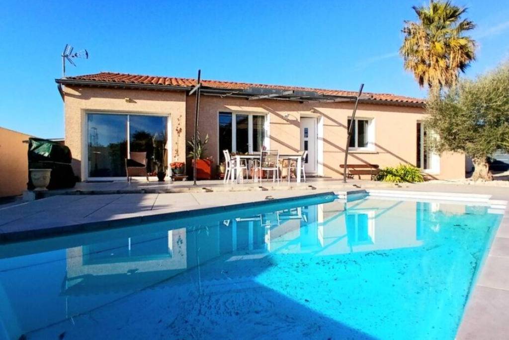 Single storey villa built in 2005, perfectly maintained, offering 122 m2 of living space with 4 bedrooms, a bathroom, a laundry area, a living room with open-plan kitchen, on a fully enclosed 600 m2 land with swimming pool, terraces and several parking spaces ! Peace and quiet ! With lovely views !