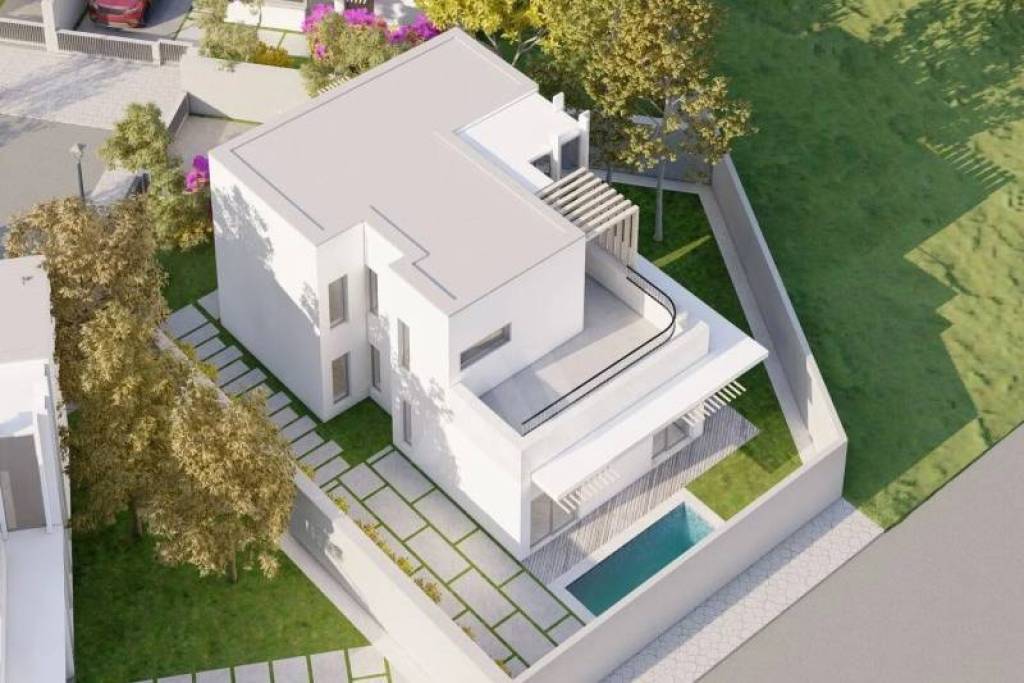 No rés do chão, encontra-se um quarto espaçoso, uma casa de banho de serviço, uma cozinha em conceito aberto totalmente equipada e uma sala de estar generosa de 30 m², com acesso direto à piscina privada e à zona exterior de lazer.