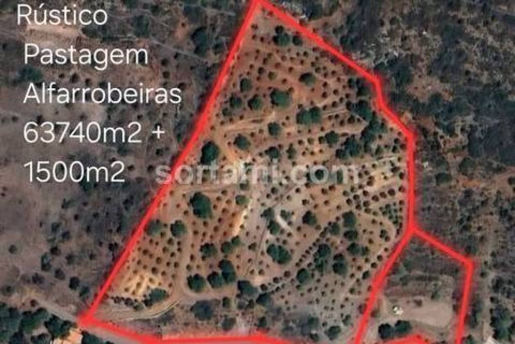 Conjunto de dois terrenos rústicos com 65.500 m², água e eletricidade, cerca de 600 alfarrobeiras, algumas oliveiras e armazém com 3 divisões.