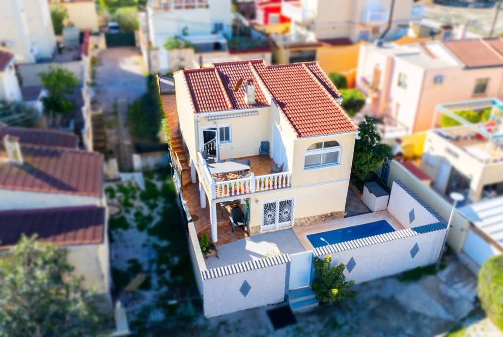 This attractive detached villa, a model "Lola" in Urbanisation La Marina offers ➡️ 154 m² of built space set on a larger plot of 237m² and is located in a quiet cul-de-sac yet well-connected area, close to shops, restaurants, and services. Perfectly placed this home sits just 3 km from the beach and 25 km from Alicante Airport, making it ideal for both permanent living and holidays.