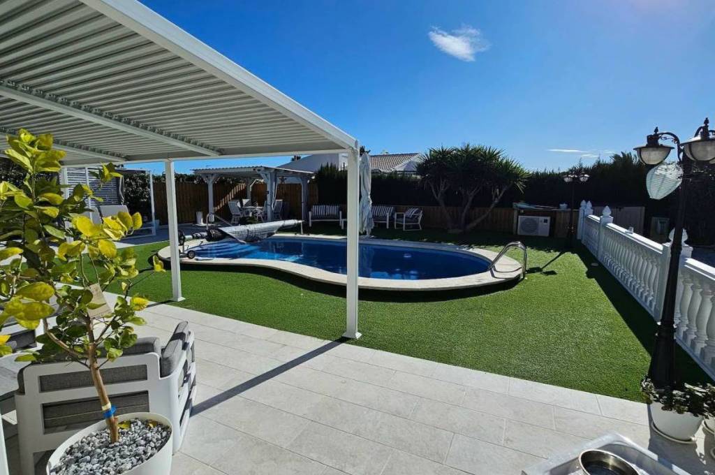 For sale is a beautiful detached villa in the sought-after area of La Marina. Offering 142 m2 of internal space, this resale property blends comfort and style across its spacious layout. With four good-sized bedrooms and four bathrooms (3 of which are en-suite), it provides ample room for family living or for guests.