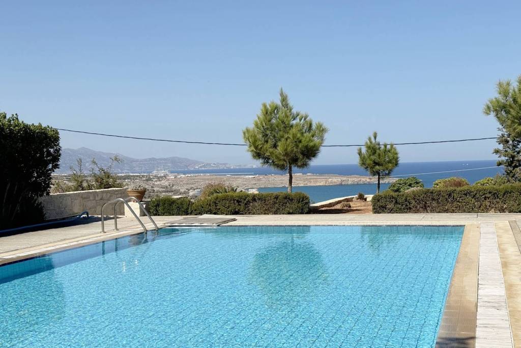 In the area of Karteros, only 10' from Heraklion city and few meters from the beach, there is a villa of 220 m2 with 3 bedrooms, an attic (with a double bedroom, a bathroom, a small sitting room and a seperate walking closet) 2 bathrooms and a wc, one open kitchen with sitting room and a balcony overlooking the pool, the sea and Heraklion city.