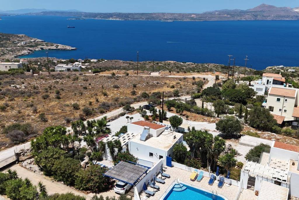This is an exceptional villa for sale in Kokkino Chorio Chania Crete set on the edge of this traditional village. This two-level Mediterranean home offers stunning sea views, modern comforts, and excellent potential as a permanent residence, holiday home, or Crete rental investment.