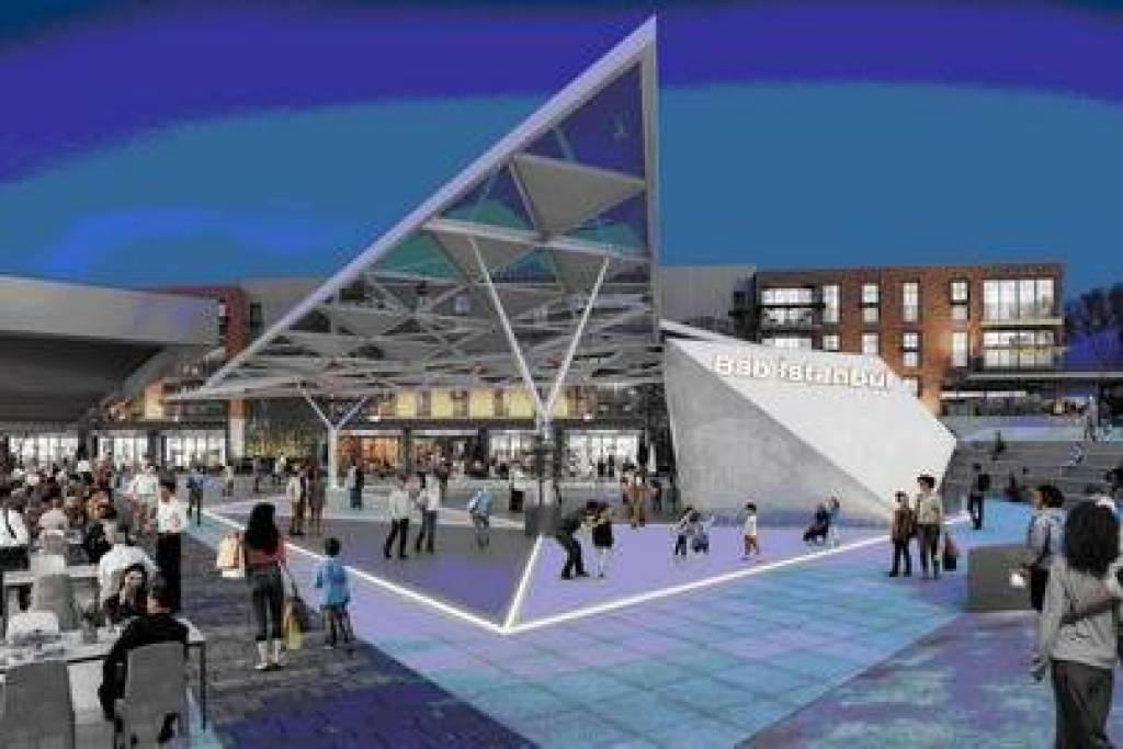 Commercial promenade with 51 retail units including cafes, restaurants, pharmacy, and market