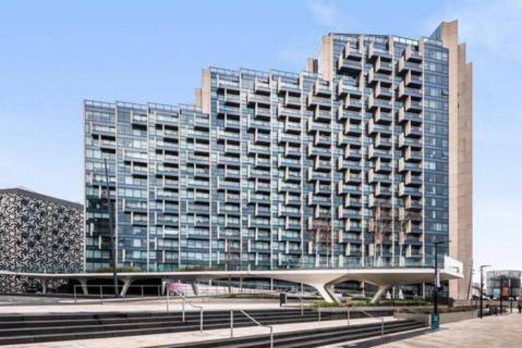 Finished to a high standard throughout, the apartment comprises an entrance hall with built-in storage, a bright open-plan kitchen, dining and living area with floor-to-ceiling windows, and access to a private balcony with impressive river views.
