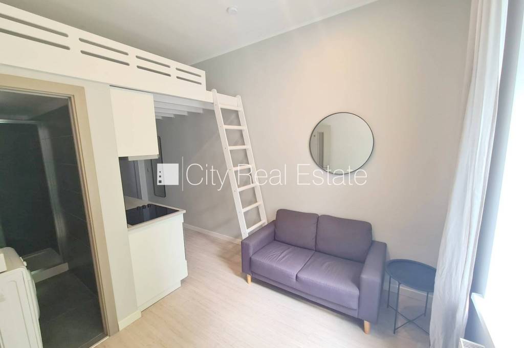 Latvia, Riga, Brivibas street. Front building, renovated building, indoor courtyard, entrance from street, staircase after capital renovation, windows are located on street side, two-storey, studio-type kitchen combined with living room, high ceiling , central heating system, full decoration, wood glass windows, painted walls, new plumbing, laminate flooring, bathroom with WC, shower stall, toilet, build in kitchen unit, kitchen table, chairs, wardrobe, refrigerator, electric range, oven, steam sip-off machine, washing machine, locked staircase, available, by signing rental agreement you have to pay for the first rent month as well as you have to pay guaranty deposit which is equal one month rent payment, if you choose this real estate, you have to pay agency transaction commission which is equal with one half (50%) of this real estate month rental payment, CITY REAL ESTATE ID - 515557