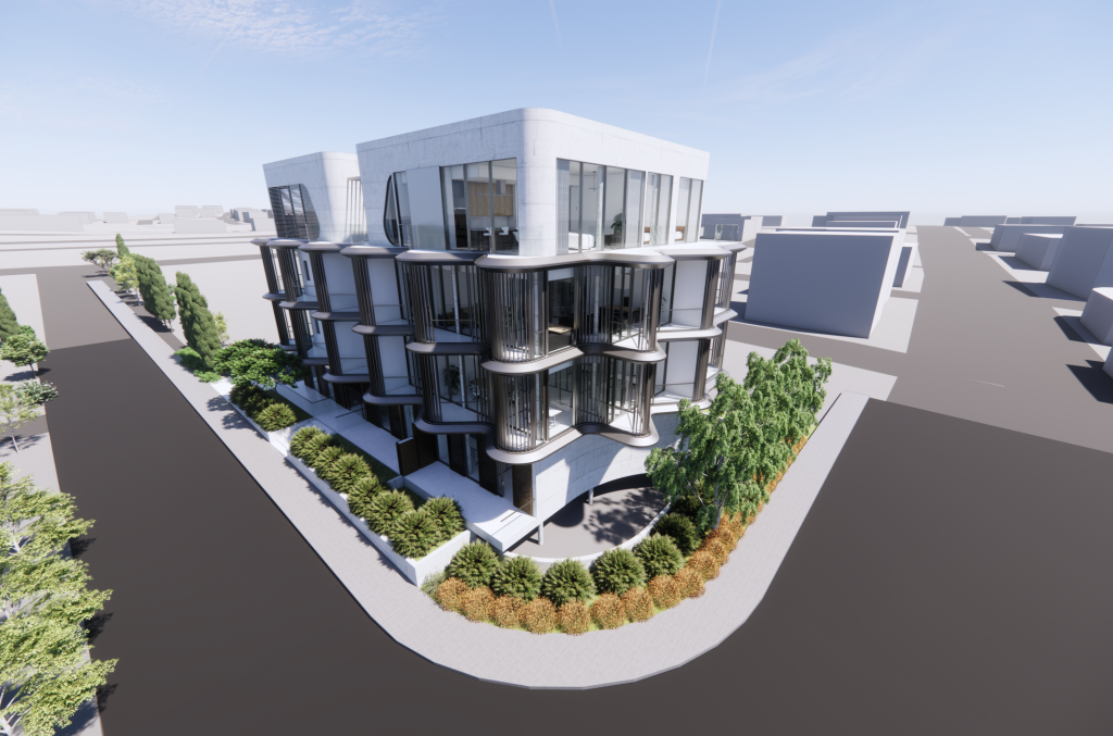 The building itself boasts a striking architectural design, characterized by sleek exterior lines and a refined blend of glass and metal. This sophisticated combination creates a dynamic play of light and shadow throughout the day. The design emphasizes natural light and ventilation, harmoniously integrating elements of the surrounding environment to ensure a bright, airy, and elegant living experience.