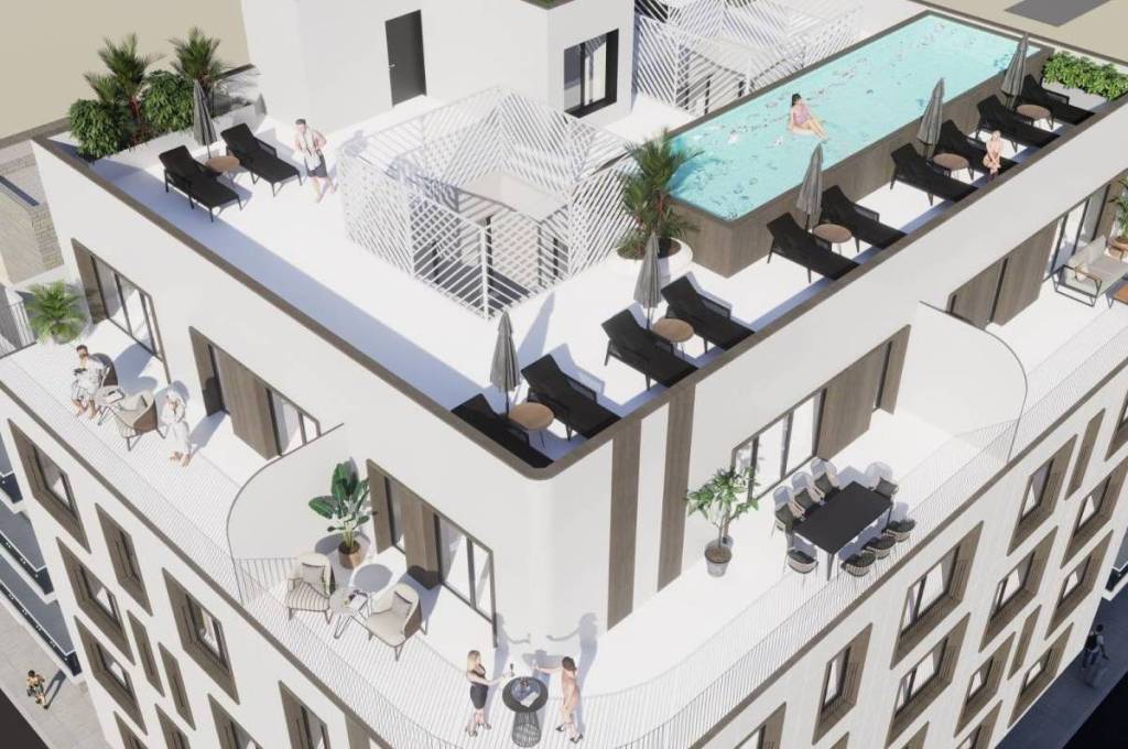 Stylish Residential Building 60 m away from El Acequion Beach at Torrevieja 23 Functional Homes with a selection of 1, 2 and 3 bedroom apartments, and penthouses with large private terraces. Optional parking spaces at underground for additional convenience. Enjoy life just steps from the Mediterranean. Surrounded by everything you need — supermarkets, schools, restaurants, parks, and beach bars — making it the perfect place to live year-round or enjoy as a second home. Each unit is thoughtfully designed to maximize natural light, space, and functionality — with some houses with private terraces or laundry rooms. On the rooftop, residents can enjoy a communal solarium with a relaxing lounge area and a swimming pool, perfect for soaking up the sun and sea breeze all year round. Distances to key points: Acequión Beach: 60 m Torrevieja town centre: 500 m Marina Salinas marina: 1.5 km Torrevieja University Hospital: 5.5 km Villamartín golf course: 10 km Habaneras Shopping Centre: 3 km Alicante Airport: 45 km High-end finishes in every home The homes have been built with top-quality materials and contemporary design: Exterior carpentry in aluminium with thermal break and double glazing Motorised blinds at bedrooms. Armoured entrance door Kitchen equipped with wall and base units Hot water produced by aerothermal system Air conditioning pre installation Baths with furnitures, mirrors and fixed glass at showers. Lift in the building Live a stone's throw from the sea and the town centre Torrevieja is one of the most dynamic and growing coastal towns on the Costa Blanca, famous for its climate, beaches, salt flats and cultural life. This development is ideal as a permanent residence, investment or second home for holidays. Contact us today for more information or to arrange a viewing and secure your home by the sea in Torrevieja.