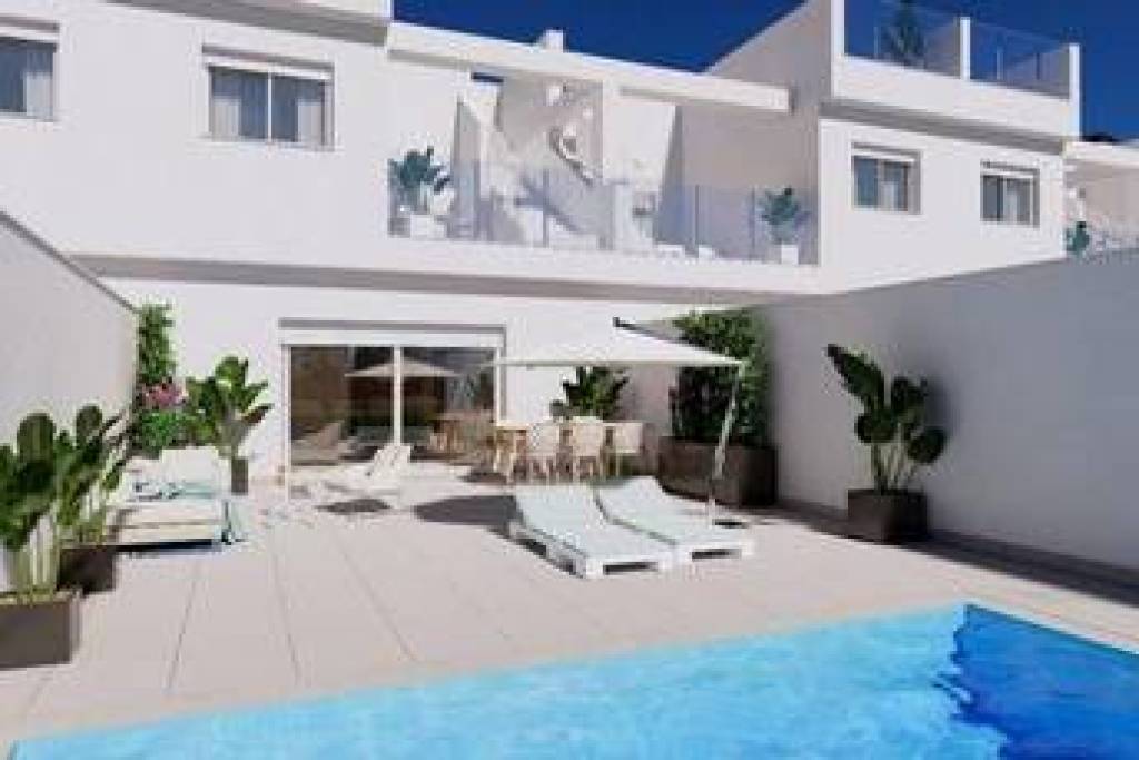 New-Build Townhouses on the Frontline of La Serena Golf in Los Alcázares Premium Location by the Golf Course and the Sea Discover an exclusive residential development of 31 new-build townhouses located on the frontline of La Serena Golf in Los Alcázares, just 600 m from the Mar Menor. Situated in the heart of the Costa Cálida, this privileged setting combines golf, beach, and Mediterranean lifestyle. With all amenities nearby and excellent road access, it is the ideal location for both holidays and year-round living. Modern Homes with Private Pool and Rooftop Solarium Each house features a stylish contemporary design and bright interior spaces. The homes are arranged across three levels plus rooftop solarium, offering maximum comfort and privacy: Basement with private garage for 2 cars and access to a patio Ground floor with open-plan living room and kitchen leading to a garden and private pool, 1 bedroom, and 1 bathroom First floor with 2 bedrooms, 1 bathroom, and 2 terraces Rooftop solarium with summer kitchen, ideal for relaxing and enjoying panoramic views East and west orientations ensure excellent natural light and outdoor living throughout the day. High-Quality Finishes and Comfort These houses are built to the highest standards, offering premium features including: Private swimming pool Basement garage for 2 cars with motorized door Aerothermal hot-water system Fully installed ducted air conditioning Furnished and equipped kitchen Fully equipped bathrooms with furniture, mirrors, and shower screens Security entrance door Live Between the Sea and the Fairway Set among lush Mediterranean landscapes, this exclusive community offers peaceful living next to the Serena Golf course, a renowned 18-hole course surrounded by nature and tranquil lakes. The warm, shallow waters of the Mar Menor are perfect for swimming and enjoying water sports such as sailing, paddle surf, and kayaking year-round. Key distances: Beach (Mar Menor): 600 m La Serena Golf: next to the complex Los Alcázares center: 2 km Cartagena: 22 km Murcia city: 40 km Murcia Airport: 30 km Alicante Airport: 90 km Secure Your Mediterranean Lifestyle Whether you are looking for a permanent residence, a holiday home, or a profitable investment, these houses offer luxury, convenience, and a superior coastal lifestyle. Contact us today to schedule a viewing and secure your new home in Los Alcázares.