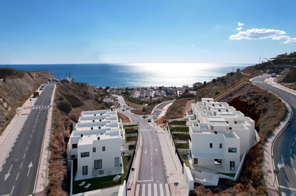 NEW BUILD TOWNHOUSES NEAR MALAGA New Build residential complex is located in Rincón de la Victoria, to the east of Málaga city. Its beautiful beaches, its proximity to all kinds of services and its incomparable landscapes make this municipality an exceptional place to live. Your new villa blends in with this environment that combines privacy, fresh air and open spaces. New Build development consists of 9 townhouses with 3 and 4 bedrooms with private gardens and basement. The design of the homes achieves the perfect architectural balance so that you can enjoy your home from the inside and outside. Kitchens fully fitted. Large covered and uncovered terraces with sea views. Private gardens and spacious basement parking. 5 minutes walking to the beach. Well communicated area with all kind of services. Close to a golf course. Private gardens and basement with parking area . Well communicated area. 574