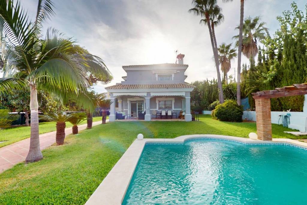 In the quiet and prestigious residential area of Monte Biarritz–Atalaya, we find this charming detached Andalusian-style villa with a distinctly family-friendly character. Its location is unbeatable: within walking distance of the beach, shops and restaurants, and with quick access to the A-7 motorway, which conveniently connects to Marbella, Estepona and Benahavís in just 15 minutes. In addition, international schools and the exclusive Guadalmina shopping centre are just a few minutes' drive away.