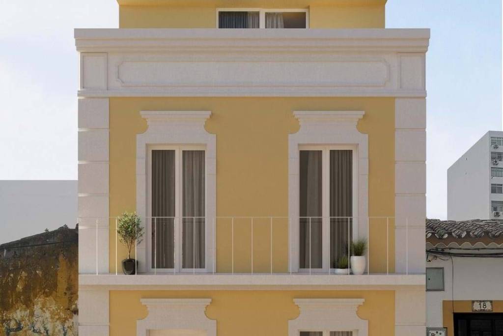 Property, in ruin, with an approved project for the construction of a house with 107m2 of gross area, 3 floors with an implantation area of 30 m2, located in the center of Faro, next to the Carmo Church, with the following characteristics: