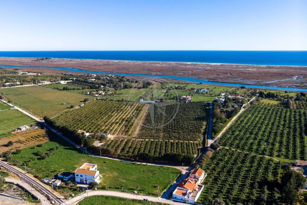 Quinta do Arroio sits close to Tavira in the East Algarve and occupies an enviable position just 500 meters from the picturesque waterfront of the Natural Reserve Park of the Ria Formosa a unique and protected water lagoon that separates the continent from the islands and the sea. The property boasts breathtaking sea views and includes a 9513 m2 plot of land, which is partially fenced and fully levelled, offering ideal conditions for agricultural works or to keep horses. Accessed via a solid country road, the family home offers on its entire ground floor level a large workshop garage of 174 m2. The main living area sits on the first floor and is immaculately presented. It comprises of a spacious living room, a good size kitchen with breakfast area and pantry, 4 double bedrooms sharing 2 bathrooms, as well as various covered terraces that wrap around the property and boast stunning views over the sea and the Ria Formosa lagoon. An 18 m2 attic and a unique rooftop terrace with impressive 270-degree views of the mountains, sea and lagoon complete the living area. East of the villa there is a large water tank that offers the potential to be converted into a swimming pool. The land has been caringly landscaped and offers a vast array of fruit trees. The property adjoins the tracks of the Eco-Via cycling running horseriding tracks and boasts huge Equestrian property potential.